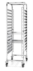 Carrello portateglie pasticceria, per 15 teglie o griglie cm.60x40, guide con interasse da 8 cm. Dotato di dispositivo di bloccaggio delle teglie su entrambi i lati, sopporta un carico massimo di 150 kg. Delle 4 ruote 2 sono dotate di freno per il bloccaggio. Ideale per organizzare in modo ottimale la cucina. In pacco piatto, da montare. Prodotto Hendi