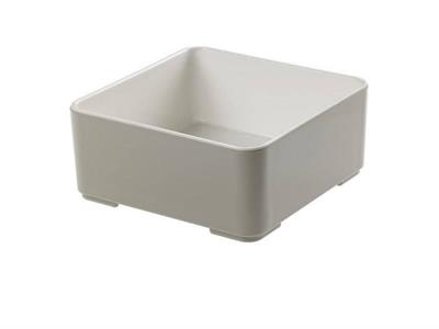 Ciotola quadrata cm.15x15 altezza cm.6. In melamina bicolore, interno bianco, esterno grigio. Forma a bordo diritto molto apprezzata, si può utilizzare per servire insalatine, patatine, aperitivi. Prodotto a prezzo scontato fino ad esaurimento scorte. Leone decorazioni.