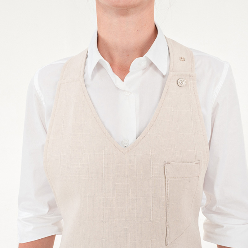 Grembiule Cefalonia, 100% poliestere effetto lino, in 3 colori: beige, grigio chiaro, verde salvia.