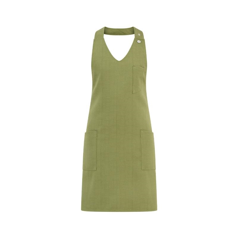 Grembiule Cefalonia, 100% poliestere effetto lino, in 3 colori: beige, grigio chiaro, verde salvia. Grembiule ideale per lavoro intensivo, la grammatura 280 g/m² garantisce durata nel tempo pur con una piacevole morbidezza al tatto. Può essere lavato fino a 60°, non teme le macchie e non necessita di stiratura. Il modello è un evergreen, rivisitato, ha pettorina con scollo a v, allacciatura regolabile con automatico, 2 tasche robuste ben cucite e taschino portapenna. Completamente rinforzato nelle cuciture per una maggiore robustezza. Novità 2025 Giblor’s