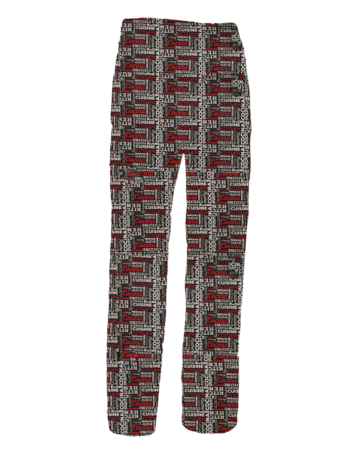 Pantaloni unisex da chef/cuoco, con comodo elastico in vita e chiusura a coulisse. Disponibili nella simpatica fantasia "cucina" . Caratteristiche: tessuto 100% cotone che garantisce il libero movimento e freschezza durante il servizio; tasche: due laterali e una tasca posteriore. Vestibilità comfort. Taglie disponibili dalla S alla XXL. Ottima tenuta ai lavaggi fino a 60 gradi. Prodotto 100% Made in Italy. Possono far parte della divisa da servizio in cucina, pasticceria, gastronomia e laboratori alimentari.