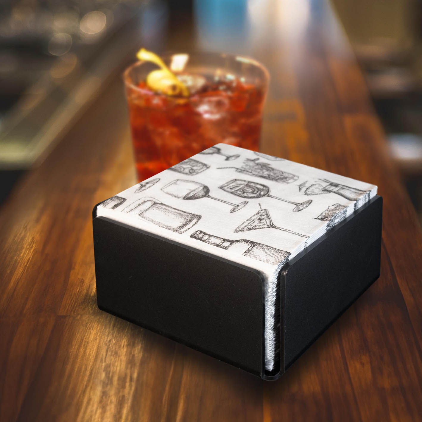 Porta tovaglioli nero opaco formato XS con piedini antiscivolo in gomma.