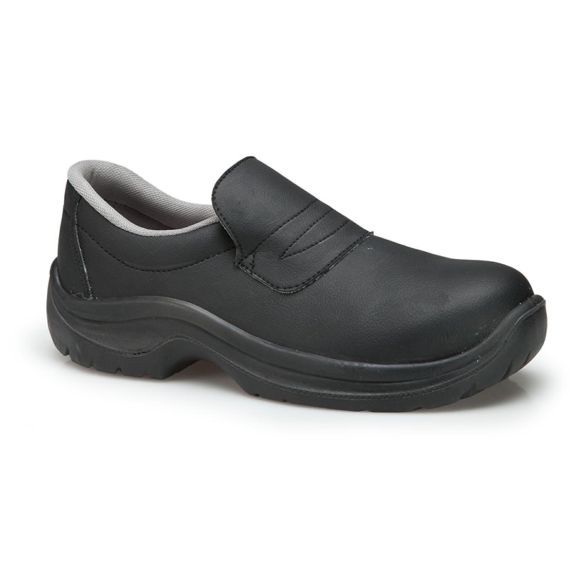 Scarpa cucina in microfibra nera, con puntale metallico di sicurezza.