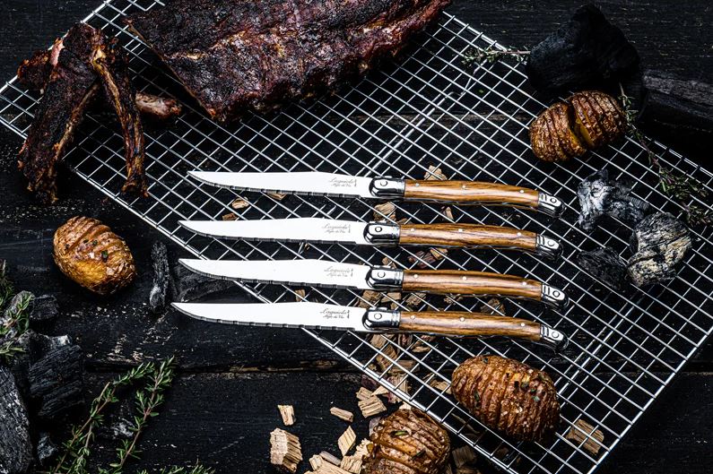 Questi coltelli da bistecca della linea Premium di Laguiole Style de Vie, dotati di manici in resina con un'elegante effetto legno (Wood), sono un vero e proprio colpo d'occhio su qualsiasi tavola ben apparecchiata. Le lame seghettate dei coltelli da bistecca sono realizzate in acciaio inossidabile e hanno uno spessore di 1,8 mm. Il set viene fornito con un pratico ceppo portacoltelli in legno.